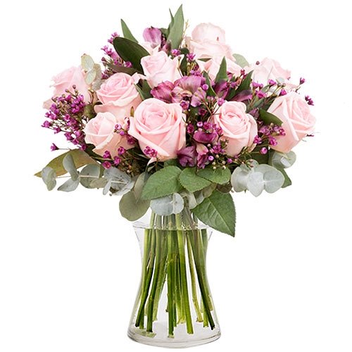 Send this bubbly pink bouquet to convey a sweet message of affection to someone you miss who lives far away. This arrangement of pink roses and alstroemerias releases the perfect blend of sweetness and energy to send your love across the distance to someone on their birthday, to celebrate a new baby or just because.
