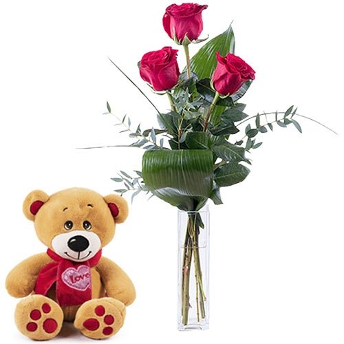 This tender gift is the perfect way to tell your sweetheart how you feel on a romantic occasion. Set their heart aflutter with this 3 rose bouquet and teddy bear delivery and surprise in time for your anniversary, or whenever you want to show your special someone that your love is true.