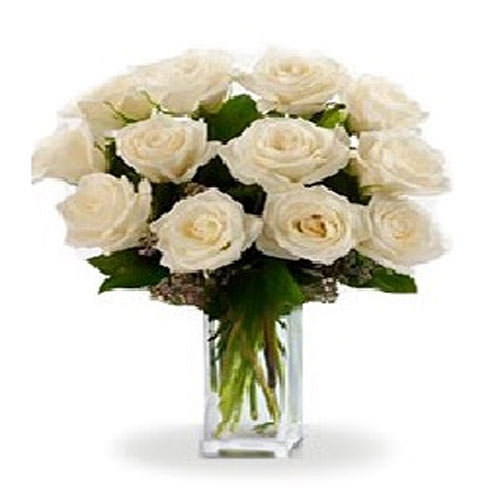 Includes: one dozen exceptionally stunning and vibrant fresh-cut, long-stemmed white roses accented with fresh greens. To allow these beautiful flowers to last much longer, they are delivered fresh, budding and ready to bloom.