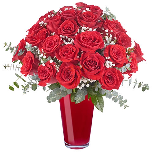 Surprise and excite your favourite person with a bouquet that will leave them speechless. Show off all your romanticism with this elegant bouquet of the highest quality red roses and gypsophila. A guaranteed hit for a special celebration of Valentine's Day or an anniversary. They definitely won't be expecting it!