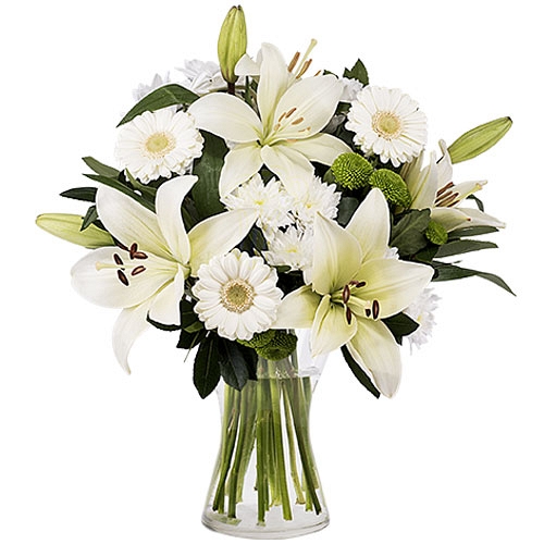 Capture and share a tiny piece of the emotion you feel for your loved ones and send these brilliant white lilies and gerberas in a dazzling bouquet. White flowers symbolise purity and sending this gift for a birthday or to welcome a new baby certainly demonstrates the truth of your loving feelings.