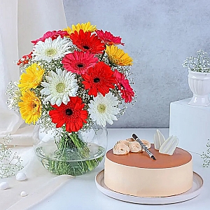 Spring Colour Vase With Luscious Cake