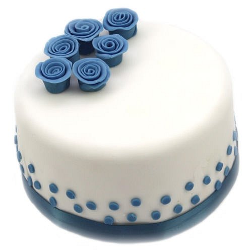 Blue Rose Cake This gorgeous hand finished celebration cake is the Perfect treat for birthdays, anniversaries, get well or for occasions to celebrate the special moments of your loved ones at all ages. Light and moist sponge cake topped with soft white icing and decorated with gorgeous blue flowers on top. Available to order online in a Choice of vanilla or chocolate sponge base with the options of personalised message card and ribbon. You can personalise this Blue Rose Cake free with your message printed on the ribbon up to 25 characters in the box on right. Like all of our products we are very happy to gift wrap the cake using our crisp tissue paper and a bright ribbon. Just Select “Gift Wrapping” on the right when choosing your preferred cake flavour. Serving Suggestions: