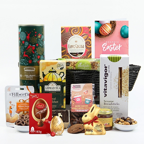 Pamper a very special someone with this delicious gourmet hamper. It's filled with sweet treats that are as indulgent as can be. With magnificent items from Love Cocoa's cranberry and caramel chocolate, valencia orange and chocolate mixed nuts, sesame bread sticks, chocolate orange biscuits, salted caramel pretzels and more! It's all beautifully packaged in a luxury keepsake basket.These delicious nibbles are perfect for sharing during the festive season Hamper Contents: