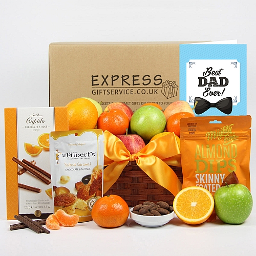 Oranges Clementines Royal Gala Apples Granny Smith Apples Mighty Fine Chocolate almonds 75g Mr Filberts salted caramel nuts 75g Cupido Chocolate orange sticks 125g Basket