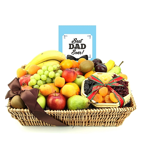 Fathers Day Wishful Delights Fruit Basket Fulfill the desire of natural fruity flavors of your loved ones with this Wishful Delights Fruit Basket. The basket is a complete package full of fresh and vivacious collection of fruits of assorted in a beautiful cane basket with silky ribbon. The fresh and juicy fruits are not enough but a small pack of dry fruits also ornament the fruit basket with its dazzling taste. Send this lavish fruits basket by post to UK for any grand occasion like Christmas, Wedding, Anniversary, Thanksgiving, or Congratulations with your personal message card attached. Hamper Contains: Assorted Dry Fruits 300gm Pears Plums Kiwi Nectarines Apricots Oranges Clementines Green Apples Red Apples Pomegranate Bananas Grapes Weight: 5.50kg