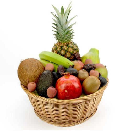 Hawaiin Fruit Basket Our pampering Fruiy hamper is packed with tasty treats for the whole family. From delicious Pineapples,Bananas, dates, pomegranate to our exquisite Kiwi and much more makes this hamper the perfect gift to send. Let the reception be pleased with the selection of your choice. All our fruits are freshly picked and packed for next day delivery. Hamper combines with the selection of: Bananas Coconut Mango Lychees Pineapple Dates Kiwi Pomegranate Papaya Avocado Weight: 5KG Comes in Beautiful Basket elegantly gift wrapped with Ribbon and Free personalised message card.