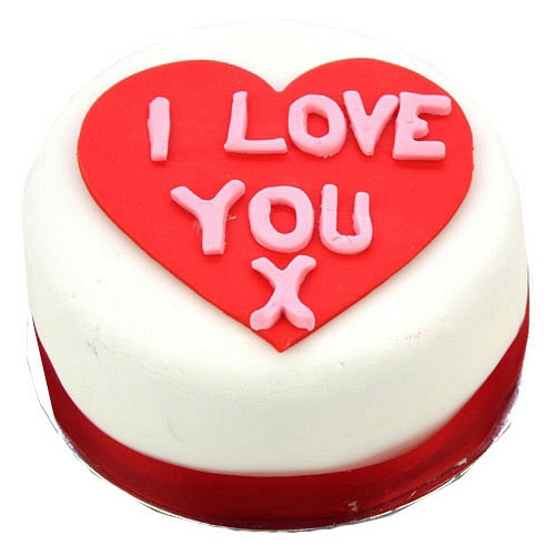 I Love You Heart Cake This simple yet the perfect gift to say I Love You. Decorated with red heart and I love you message on a soft white icing ideal for anniversaries, birthdays and valentines day. Available to order online in a Choice of light golden vanilla sponge sandwiched between vanilla buttercream and raspberry or layers of rich chocolate sponge filled with indulgent chocolate buttercream and finished with our our luxury satin ribbon. You can also personalise this cake free with your message printed on the ribbon up to 25 characters in the box on right. There is no charge for ribbon personalisation. Like all of our products we are very happy to gift wrap the cake using our crisp tissue paper and a bright ribbon. Just Select “Gift Wrapping” on the right when choosing your preferred cake flavour. Serving Suggestions: