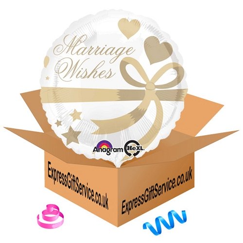 Marriage Wishes Standard Foil Balloon Delivered inflated with a ribbon and a weight to stop it flying away! This Balloon is a great alternative to Cards and Flowers. You can send this Balloon on its own or with one of our Bear friend for added impact.