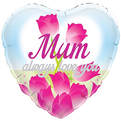 These Mother's day foil balloons are elegantly printed with flowers and 'Mum, Always Love You'.