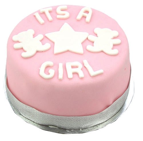 This simple new baby cake covered with soft pink icing and decorated with white bear and new baby message perfect to send to your loved ones on the arrival of new baby girl. Comes with a choice of light golden vanilla sponge or Belgian chocolate the cake is generously filled with a layer of butter cream and raspberry. This cake is finished wrapped with a pink ribbon.