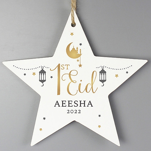 This personalised wooden star decoration is a lovely gift to celebrate baby's first Eid!