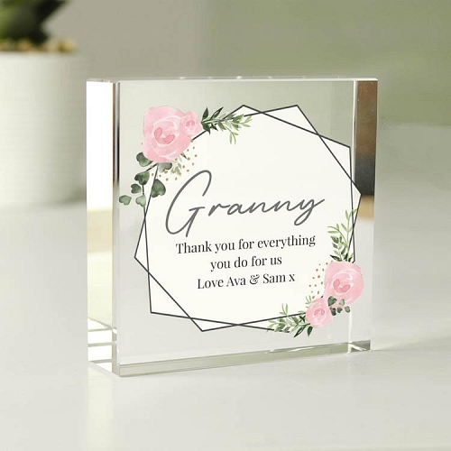 This Sentimental Floral Glass Token is the most perfect modern gift to suit any occasion. This versatile product can be used as an ornament or paperweight. Personalise this token with: Line 1 (name/role) - up to 12 characters (fixed upper case) Line 2 (message) - up to 25 characters Line 3 (message) - up to 25 characters Line 4 (message) - up to 25 characters "Love you" is fixed text. Comes presented in a black gift box. Ideal for Birthdays, Mother's Day, New Home, Teacher Gift, Wedding Party Gift