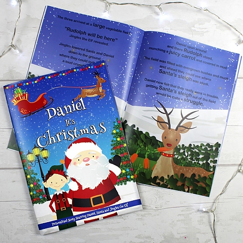 Join Santa and Jingles the Elf and help save Christmas in this personalised story book. Personalise this story book with any name up to 12 characters. Followed by a message of up to 4 lines, 25 characters per line. The message will appear on the front page inside the book. The name will appear throughout the story. All personalisation will be as requested. Please refrain from using block capitals for the name, otherwise this will effect the flow of the story. The words 'It's Christmas' on the front of this book and the story are standard text. Ideal as a stocking filler or a Secret Santa gift. Great for Christmas. Contains 32 pages.