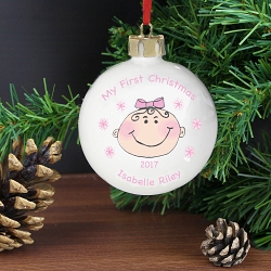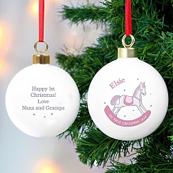 Personalised Gold & Pink Stars My 1st Christmas Bauble