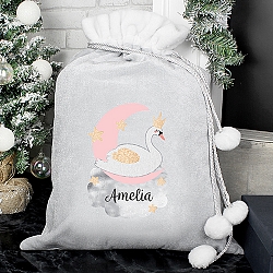 Personalised Swan Lake Luxury Silver Grey Pom Pom Sack