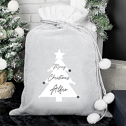 Personalised Christmas Tree Luxury Silver Grey Pom Pom Sack