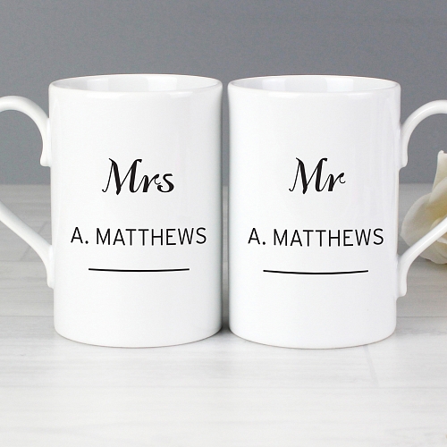 Each mug can be personalised on the front with up to 2 lines of text. Line 1 can hold up to 5 characters and line 2 can hold up to 15 characters in length. Line 1 is case sensitive and will appear as entered. Line 2 will automatically appear in UPPERCASE.You can then add a message to the reverse of the mug over 4 lines up to 30 characters per line. The message on the reverse will appear the same on both mugs. The personalisation on the reverse is case sensitive and will appear as entered.The mugs are ceramic.What's more, this fantastic gift can also be made and dispatched in 48 hours.Hand wash is recommended.Ideal for Wedding, Anniversaries, New Home, Valentines.