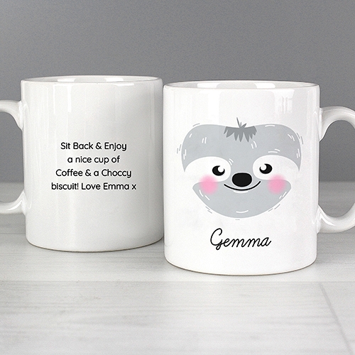 This super cute personalised sloth face mug is perfect for any occasion! This mug can be personalised with any name on the front up to 12 characters long and a message over 4 lines with 25 characters available per line. Personalisation will appear as entered. Please avoid using block capitals on line 1 (name) as this may make the personalisation hard to read. Material is ceramic Perfect for any occasion!