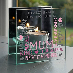 Personalised Floral Heart Mothers Day Mirrored Glass Tea Light Holder