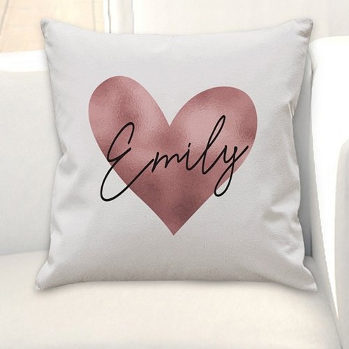 Personalised Name Only Rose Gold Heart Cushion This Personalised Rose Gold Heart Cushion makes the perfect Valentine, Anniversary or Homeware gift. Personalise this cushion with a name of up to 12 characters. All personalisation will appear as entered. Please refrain from using all uppercase as it may make the text hard to read. Cool wash only. Line Dry. Iron on reverse only. The material of this product is 100% cotton. Cushion is included.