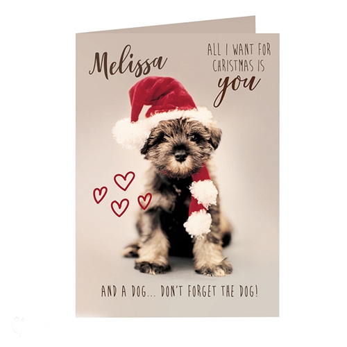 Personalised Rachael Hale 'All I Want For Christmas' Puppy Card
