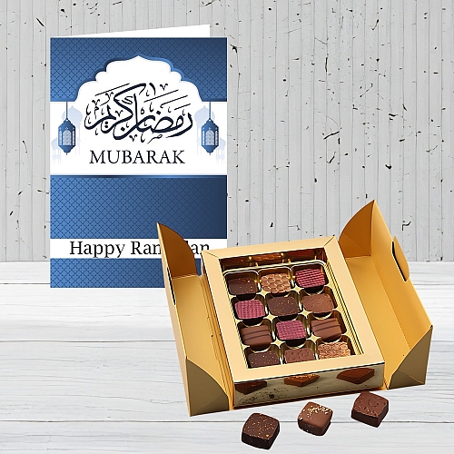 Ramadan Card Dietary Information: Suitable for Vegetarians Alochol Free Product contains nuts, whole milk and soya Features: Items are packaged in a stylish Gift Box Arrives decorated with a hand-tied satin ribbon. Personalize It! Complete the personalisation option during checkout and we'll print your message on a satin ribbon. One line with up to 30 characters with Text repeats across entire ribbon. Delivery: Order by 11am for next day Delivery in UK and Mainland Scotland Home or Business address. Deliveries to Channel Islands, Scottish Higlands, Nothern Island, and certain Postcodes delivery may take 2 -3 Working days.Most of our Hampers range are available for delivery From Monday - Saturday. Orders received after 11am GMT on Friday, weekends or on Bank Holidays we will despatch the products on the 1st working day for next day Delivery.