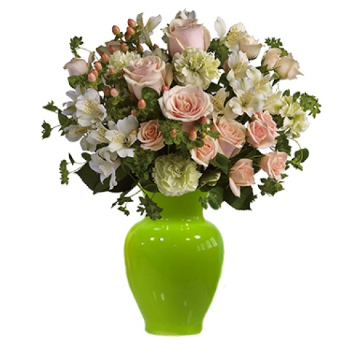 Anything for You This lavish bouquet of spring roses and alstroemeria has an antique, classic feel that's entirely feminine. This arrangement is a great way to make anyone feel extra special! Peach roses, white alstroemeria, pale green carnations and peach hypericum are mixed with bright green bupleurum in an elegant Ceramic Vase. Depending on availability, components such as vase color and design, may vary. Delivery Information: Deliveries are subject to product availability. If for any reason the items you ordered are no longer available or any substitutions are necessary, they will be made with items of equal or greater value. We offer deliveries in United Arab Emirates states of Dubai, Abu Dhabi, Sharjah, Ajman and Al Ain. Sameday Delivery available for orders received by 11am Local time. All Orders received after the local Cut off time will be delivered next day. There are no deliveries on Bank Holiday, Public Holidays and religious Festival Holidays. Orders received will be processed for delivery the next working day. For more information on delivery in UAE please speak to our Customer Support team.