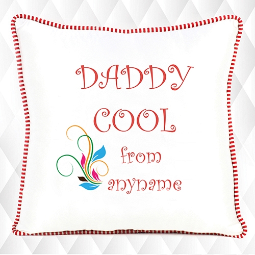 Make this Father's Day extra special for your dad as you surprise him with this beautiful cushion. It is a fresh looking cushion with white front and back panels and contrast piping gives this cushion a distinctive look. Dimensions: 14 x 14 inches Finished Detail: Piped Cover, Removable Zipped Cover Material:Imported Fabric Filling: Cushion pad is filled with Polyester fiber Balls How can you customise this cushion? The cushion is personalised with name of the sender printed on the front side.