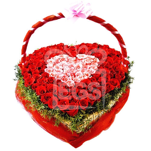 This breathtaking arrangement of plump red roses and lavish Pink Roses surround by lush greenery beautifully arrange in a heart shape Basket can’t fail to melt the heart of that ""Someone Special. Key features: 105 - 120 Stems of Red and Pink Roses ( Depends on Flower Size ) Heart Shape cane Basket