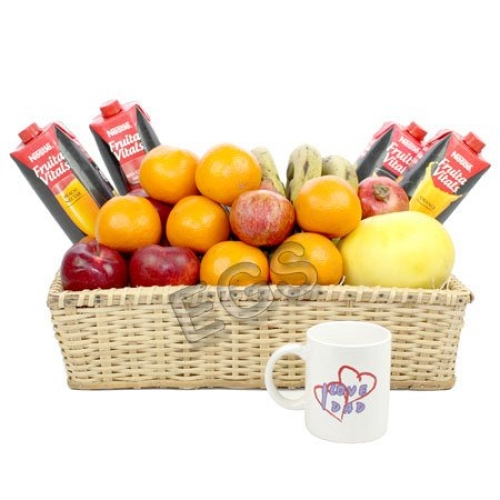7-9KG Fruit Basket 4- Nestle Juices (1 Litre Each) I Love You Dad Mug