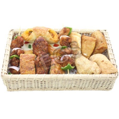 Hot Snacks Basket From Bakery Impress your family, friends and business colleagues with one of our continental gift hamper. Beautifully finished with a hand tied ribbon and your personalized message card, these make an IMPRESSIVE CORPORATE GIFT, or simply a HUGE INDULGENT TREAT! Contains: 2 Shashlik 2 Chinese Pastry 2 Drumstick 2 Samosa 2 Small Pizza (Chicken Cheese) 1 Masroom Roll 1 Chicken Roll 2 Pie