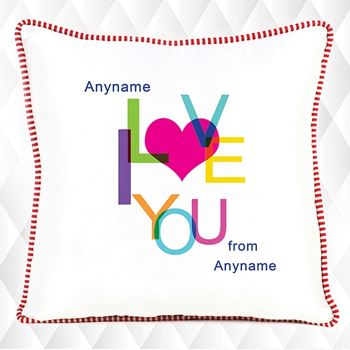 It is a fresh looking cushion with white front and back panels and contrast piping gives this cushion a distinctive look. Dimensions: 14 x 14 inches Finished Detail: Piped Cover, Removable Zipped Cover Material:Imported Fabric Filling: Cushion pad is filled with Polyester fiber Balls How can you customise this cushion? The cushion is personalised with name of the sender and the receiver printed on the front side. Delivery of this cushion is available to all major cities of Pakistan, and require 2-3 working days notice to be delivered on your requisite date. Please Contact Customer Support team for more Information
