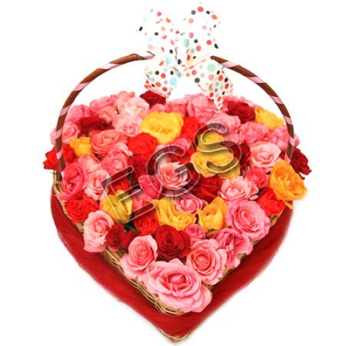 Mix Roses Heart Basket Express your only love with this beautiful presenation of mix roses arranged in heart shaped basket. Your special someone will feel how much you adore them after receiving this beautiful gift! Contains: 5 - 6 dozen Mix roses (depending on the size of the flowers) in the heart shaped basket.