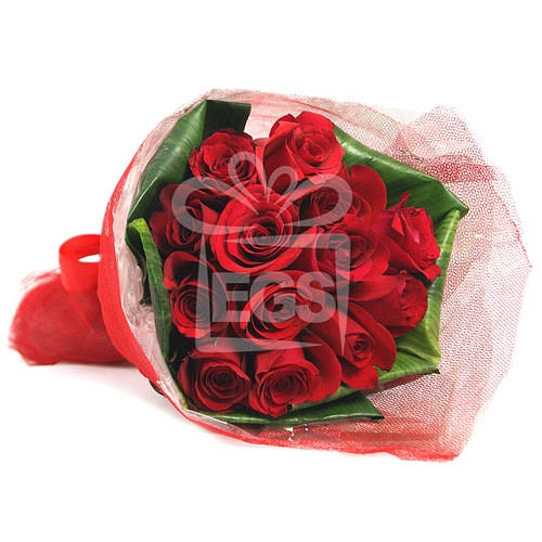 12 Red Roses, hand tied Bouquet ideal to compliment with your gifts to give a personal touch.
