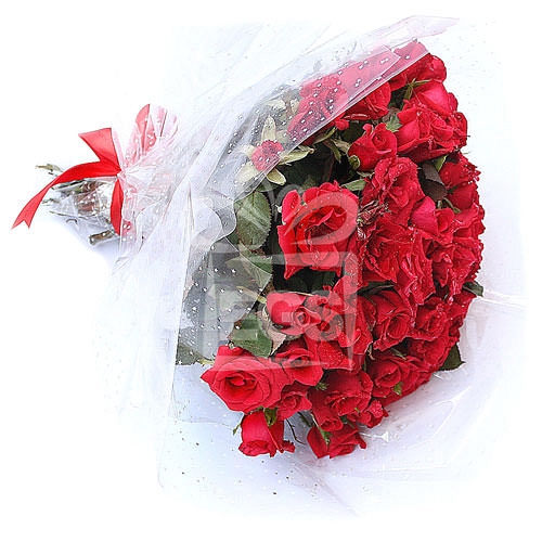This ravishing assortment of radiantly red roses is enough to speak your heart out. Wrapped together in a white net and tied with a gleaming red ribbon, it is a timelessly thoughtful gift. This arrangement is handmade using the Following Flowers: 60 Stems of Red Roses Green Foliage leaf Hand Tied Bouquet by our expert florist