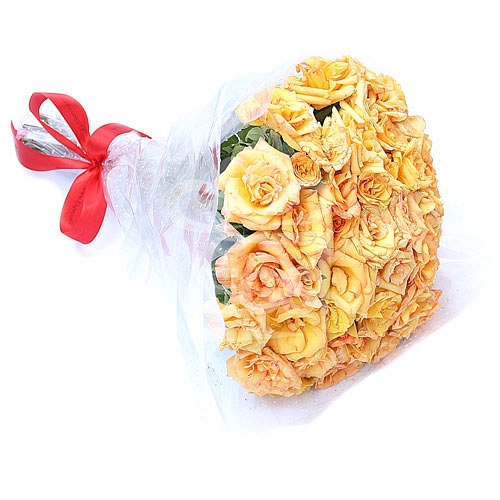 Yellow Glory Find beauty and fragrance combined in this grand arrangement of sixty delightful roses. Nestled among lush green leaves, these tempting flowers make for a memorable retreat. This arrangement is handmade using the Following Flowers: 60 Stems of Yellow Roses Green Foliage leaf Hand Tied Bouquet by our expert florist