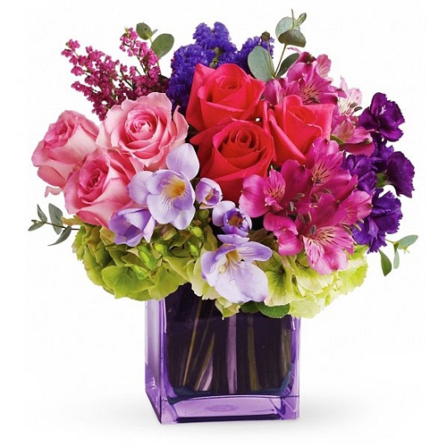 Brilliant blossoms are gorgeously arranged and delivered in an exclusive lavender vase. Let them know how special they are to you by sending this fabulous gift.
