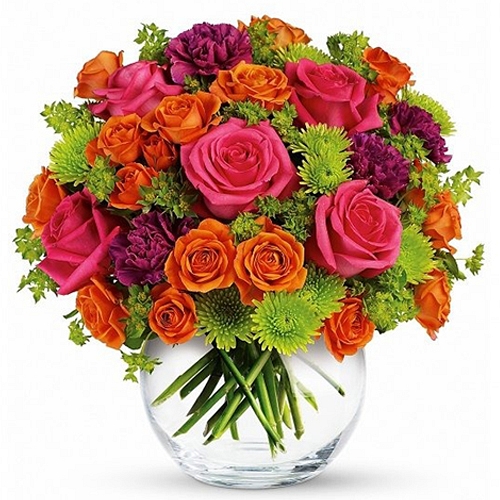 This sweet array of pinks, oranges and greens is delivered in a sparkling glass bubble bowl, sure to bring smiles and warm feelings.